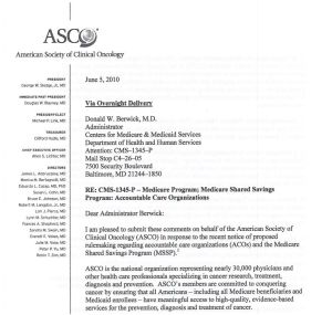 ASCO is the national organization representing nearly …. (for complete letter submission, click here).
