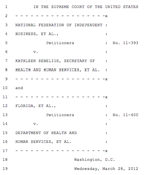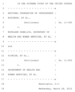 [Editor’s Note: Later today, the Court hears the arguments over states’ rights and the expansion of Medicaid under the Act].