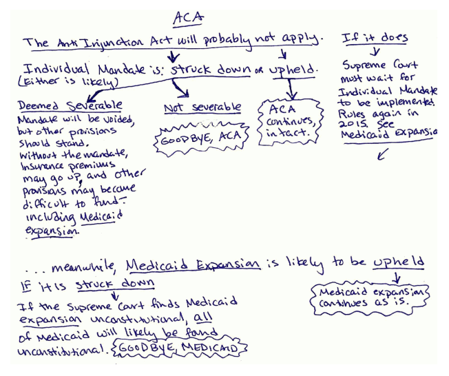 While trolling for interesting tidbits on the web, I came across what appears to be a simplified representation of the impact of the Court’s ruling. The original piece was offered by Emily Corwin and posted under the title ‘SCOTUS And The Affordable Care Act: An Overview.’
