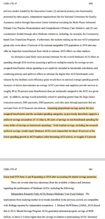 And on quality- the average ACO earned 92% on their quality scores- and the scores improve the longer you are in the program according to the ACO Rule’s Regulatory Impact Assesment. (The Aledade average quality score applied was over 95%, and as high as 99.8% #GoKANSAS)