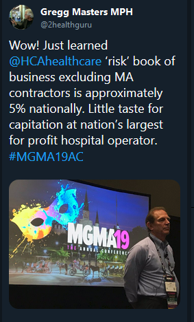 Having just returned from the Medical Group Management Association’s (MGMA) annual conference in New Orleans, I was struck by and tweeted out the following observation reported by the largest for-profit hospital operator in the U.S.: